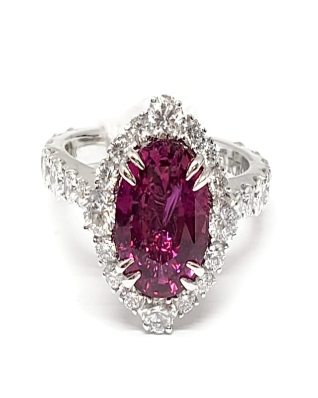 18K White Gold Burma Ruby Necklace with Diamonds, 17.5"L