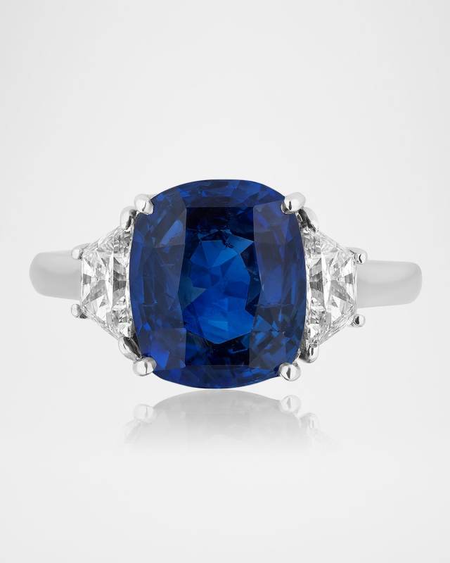 18K White Gold Sapphire and Diamond 3 Stone Ring, Size 6.5