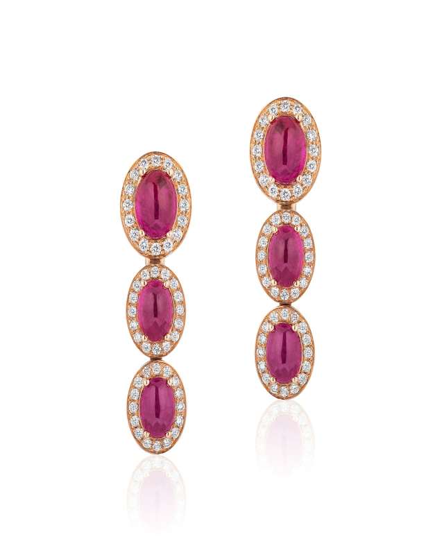 18K Rose Gold Ruby and Diamond Triple Stack Earrings