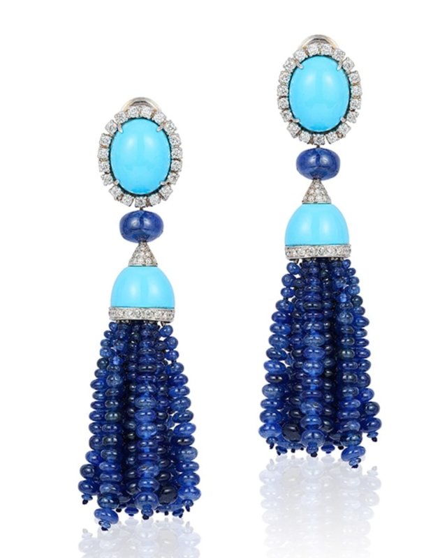 18K White Gold Blue Sapphire and Diamond Double Statement Earrings