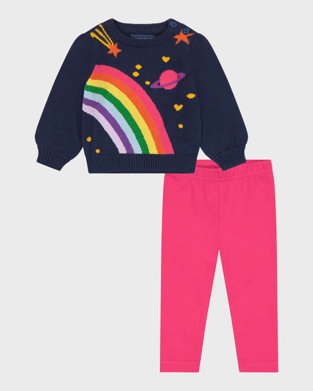 Girl's Rainbow & Space Graphic Sweater W/ Leggings, Size Newborn-24