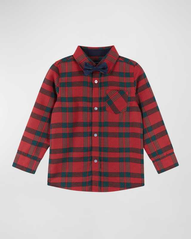Boy's Holiday Flannel Button Down W/ Bowtie, Size 2-7