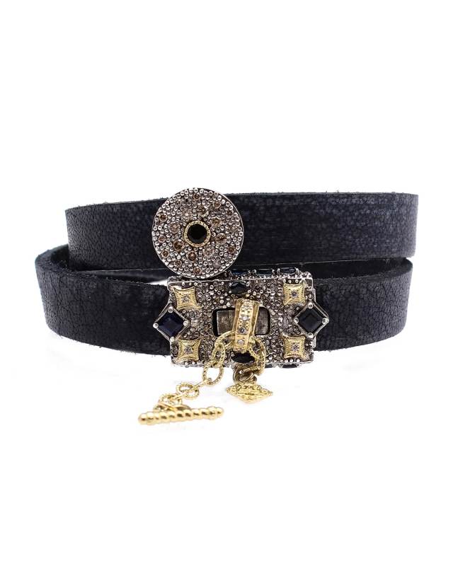Old World Tourmaline and Diamond Shield Leather Bracelet