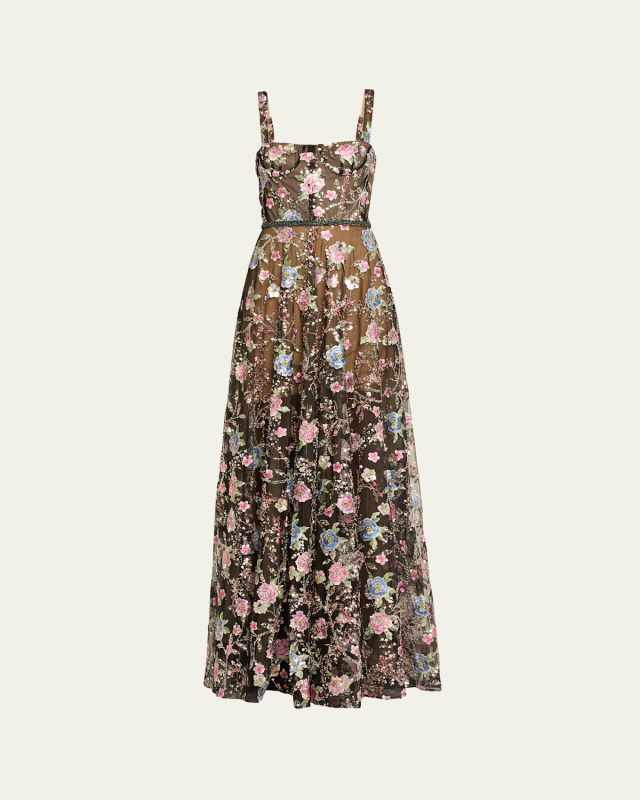 Dahlia Strapless Floral-Embroidered Sequin Gown