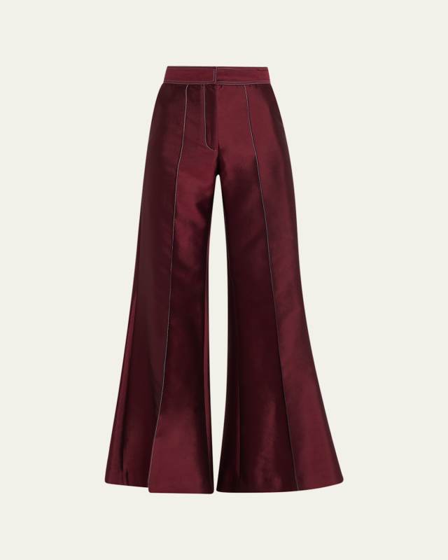 Metallic Taffeta Wide-Leg Pants with Patch Pockets