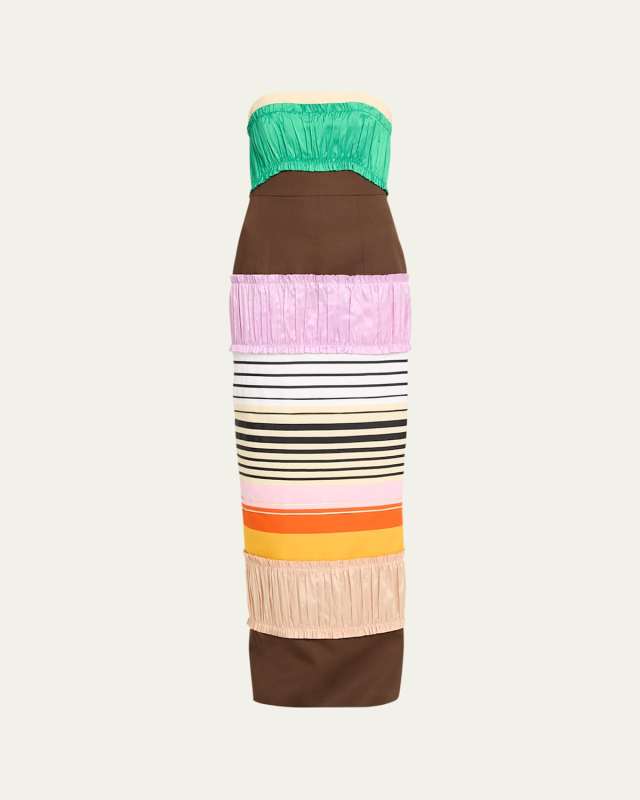 Multi-Striped Rib-Knit Backless Long-Sleeve Dress