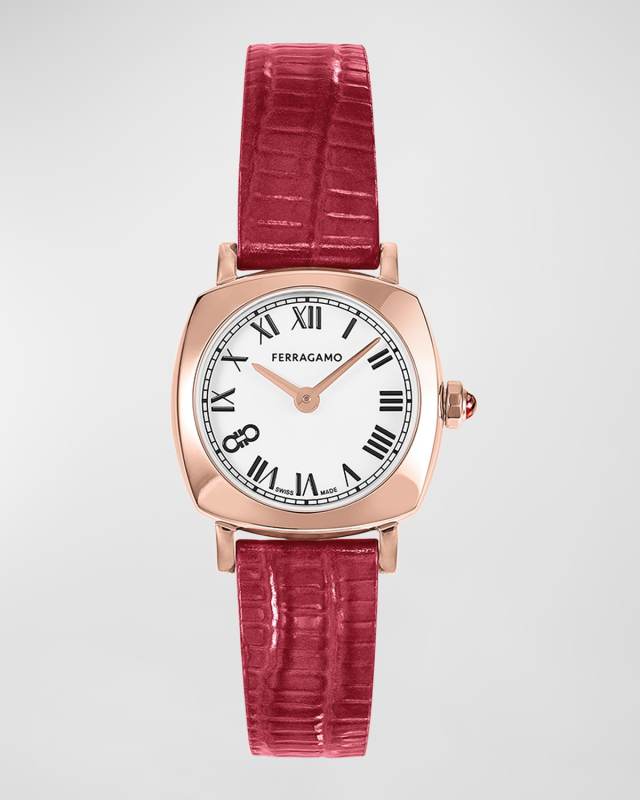 26.5x33.5mm Ferragamo Crystal Watch with Calf Leather Strap