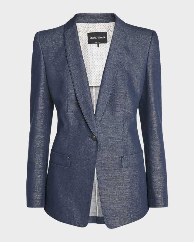 Single-Button Denim Blazer Jacket