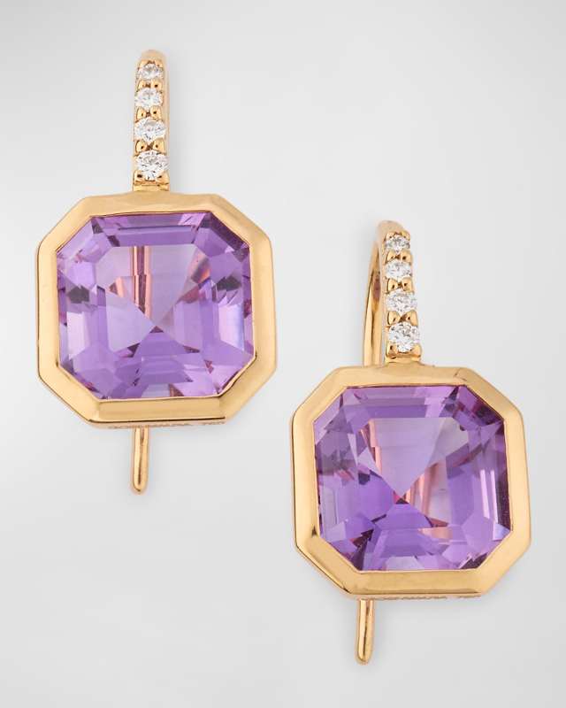 Gossip Emerald-Cut Citrine Hoop Earrings with Diamonds