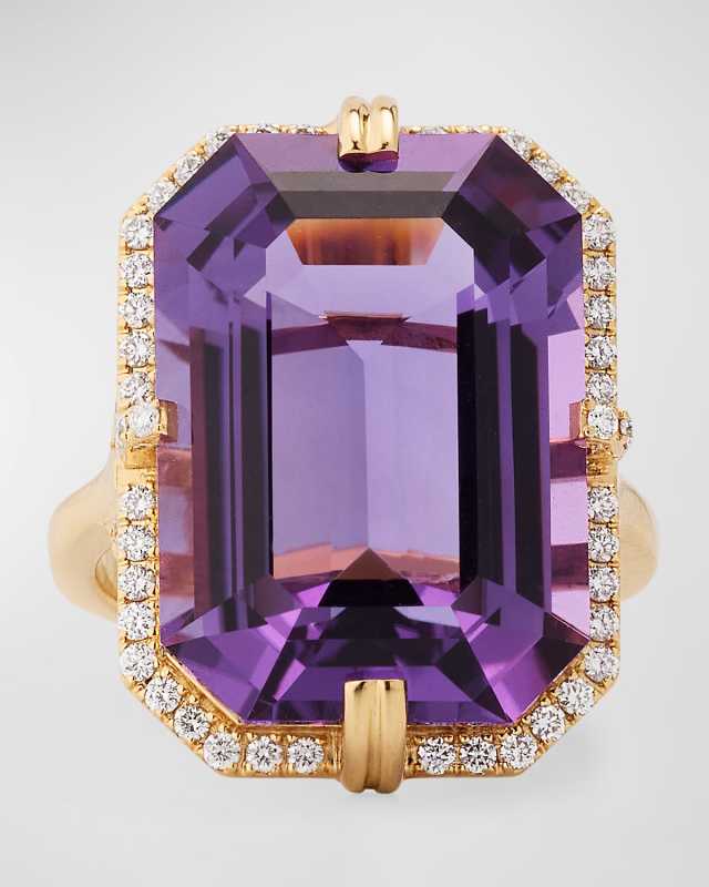 Gossip Emerald-Cut Amethyst Statement Ring with Diamonds