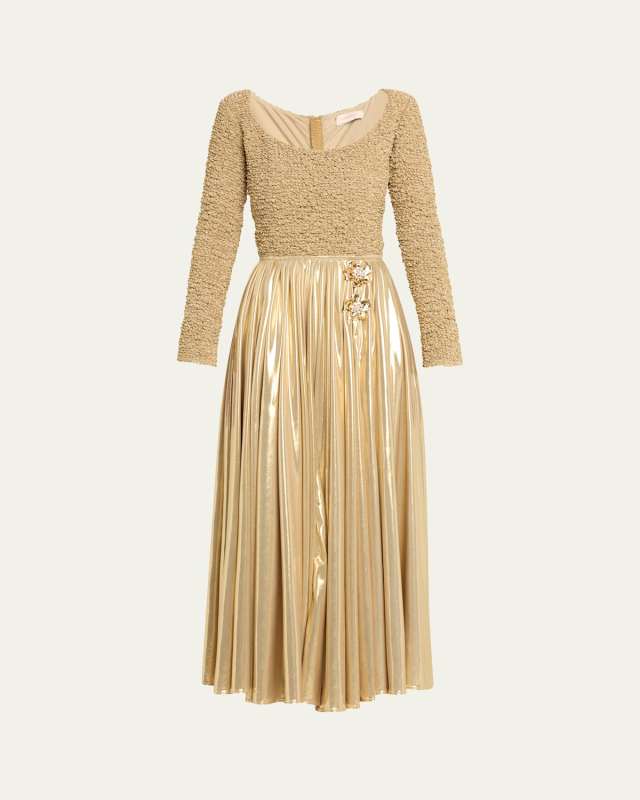 Arista Wrap-Front Satin Brocade Midi Skirt