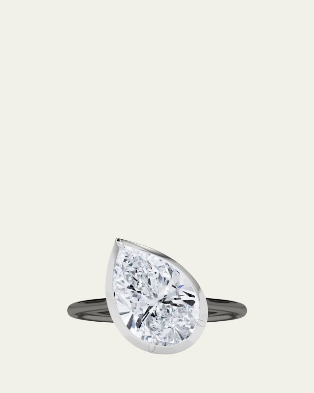 Two Tone 18K Tilted Pear Lab Grown Diamond Ring, 3.0tcw