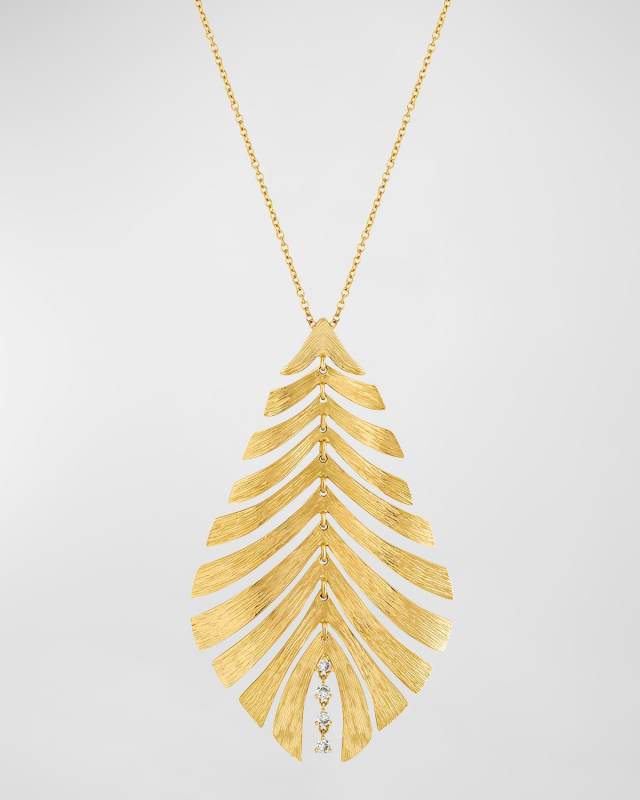 18K Bahia Yellow Gold Diamond Leaf Pendant Necklace