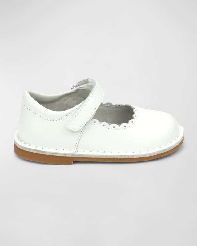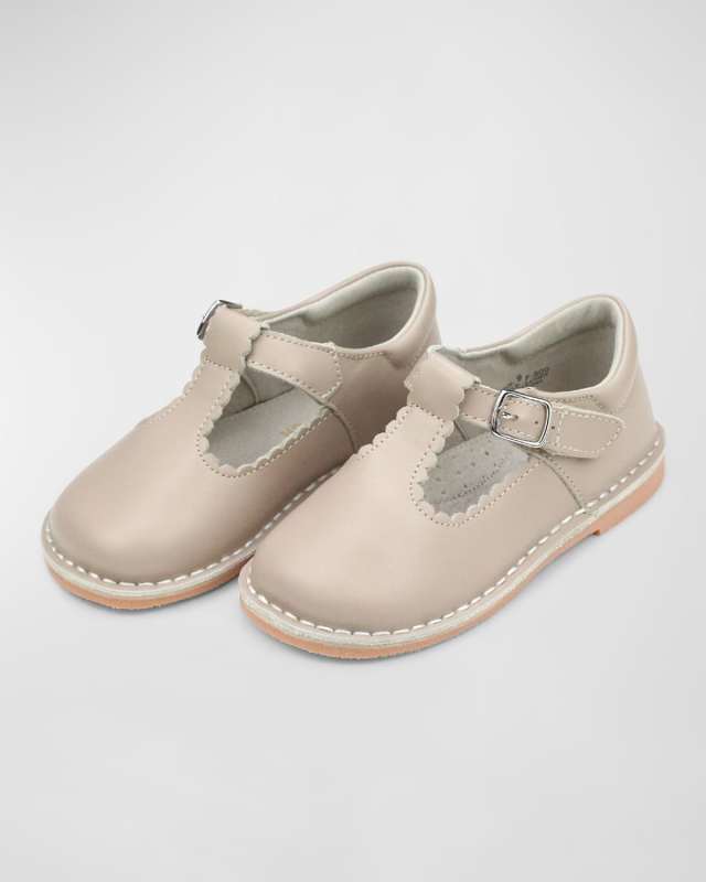 Girl's Louise Scalloped Leather T-Strap Mary Jane Flats, Baby/Toddler