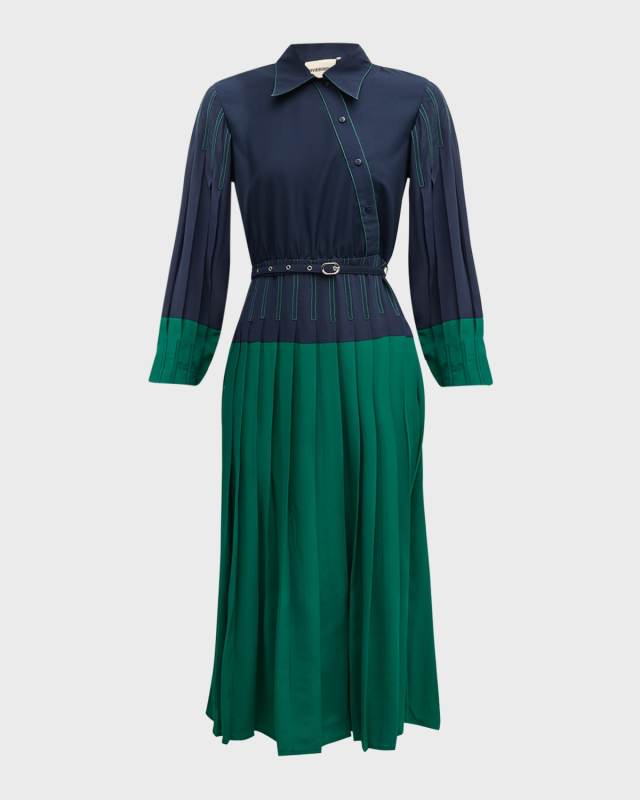 Oslo Pleated Contrast-Stitch Midi Shirtdress