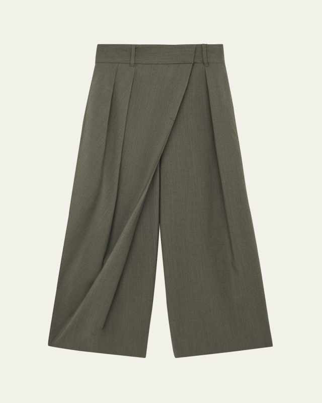 Turn-Up Shiny Leather Wide-Leg Ankle Trousers With Lamb Shearling Cuffs