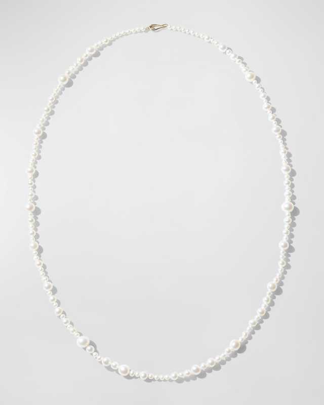 14K Yellow Gold Multi-Size White Freshwater Pearl Strand Necklace