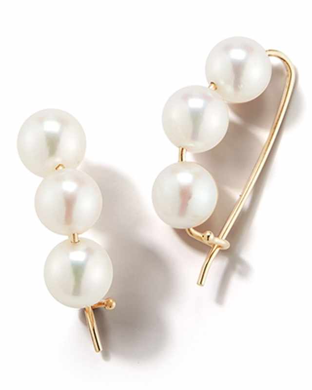18K Yellow Gold Cuff Earring with Akoya Pearl, Single