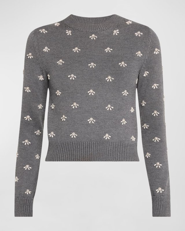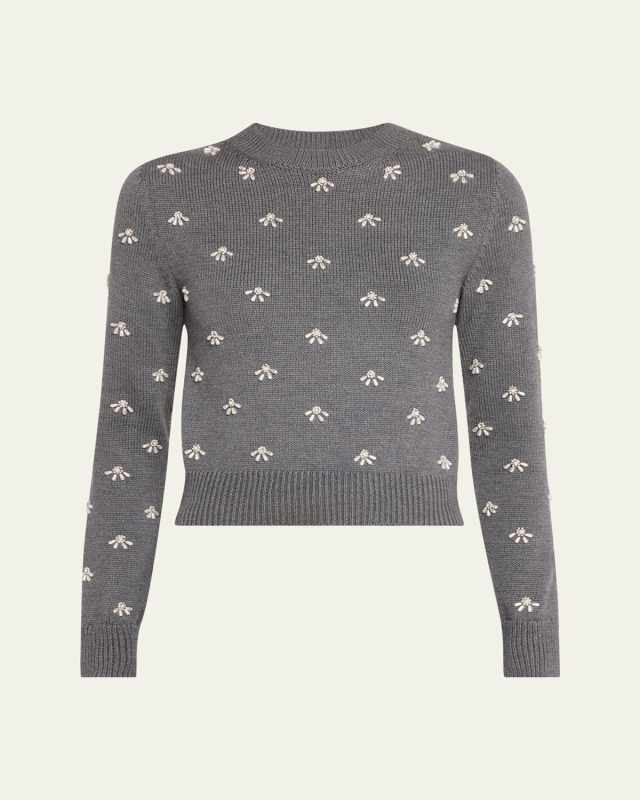English Rose Printed Crewneck Cardigan With Scalloped Tr