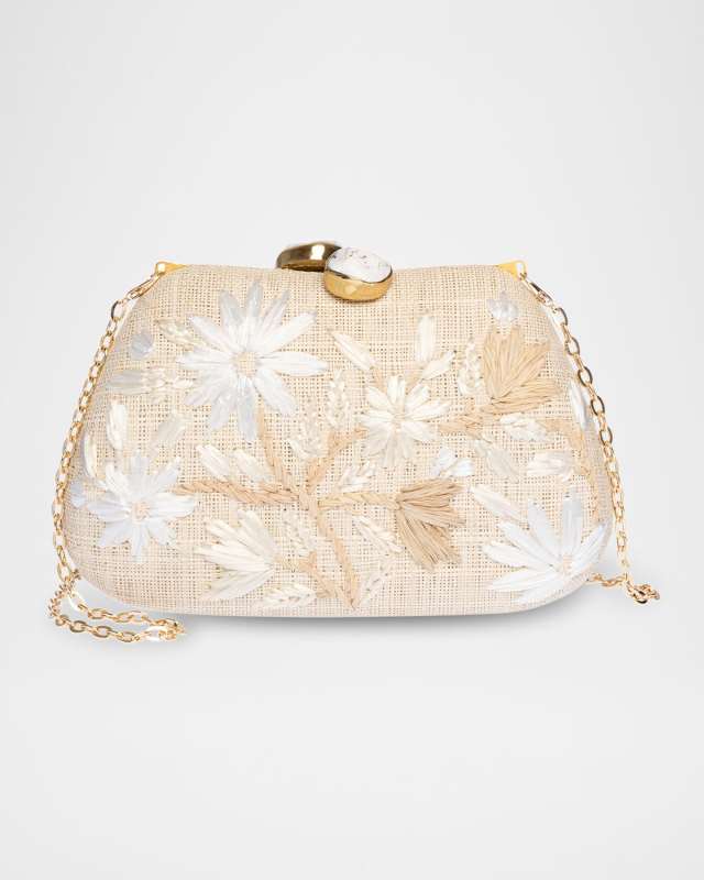 Tamu Floral-Embroidered Raffia Clutch Bag