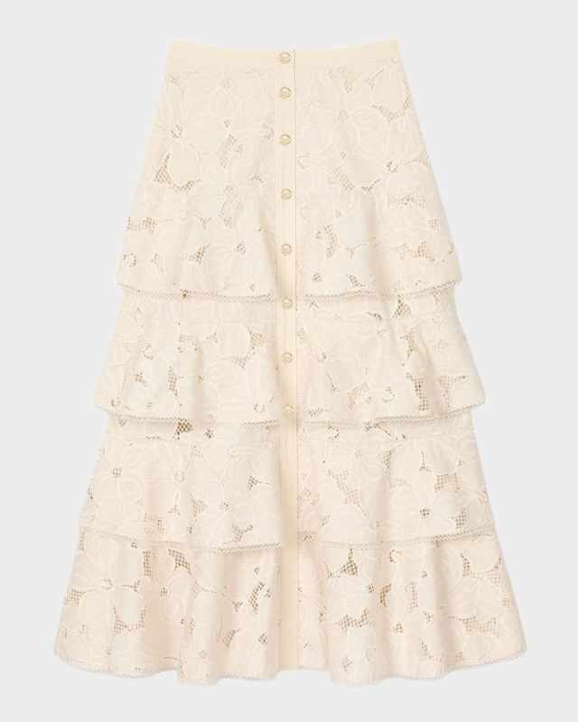 Orlivia Tiered Floral Embroidered Midi Skirt