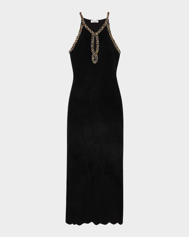 Jenna Beaded Velvet Knit Midi Dress
