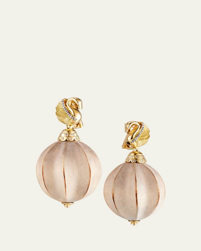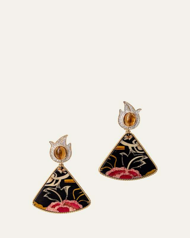 18K Yellow Gold Earthy Marquetry Orchid Earrings with Diamonds and Citrine