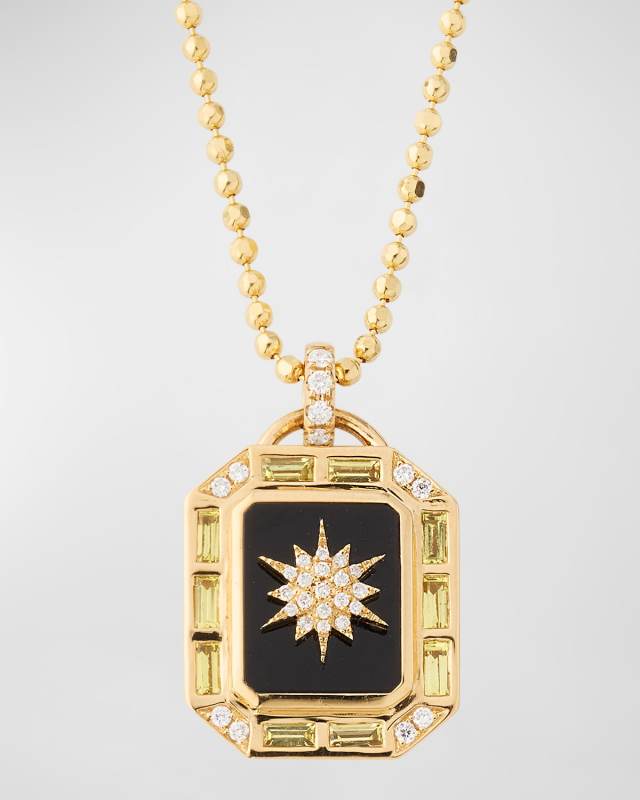 18K Yellow Gold Black Onyx Pendant with Sapphires, Tsavorite and GH-SI Diamonds, 54x28mm