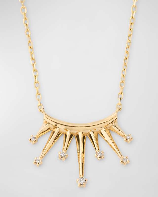 18K Yellow Gold Smooth Teardrop Chain Necklace with Diamonds, 18"