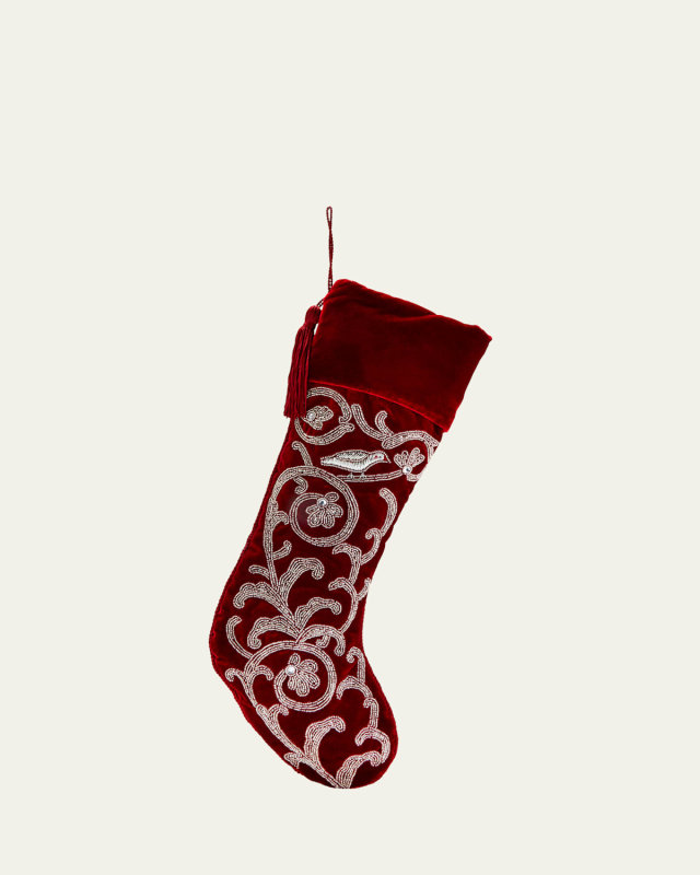 Velvet Christmas Stocking with Beading, Personalized