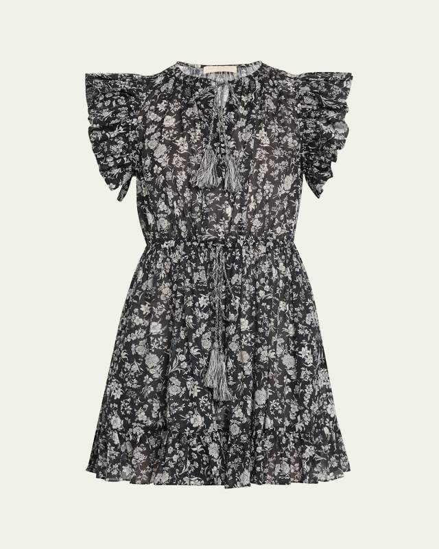 Ava Long-Sleeve Tiered Silk Mini Dress