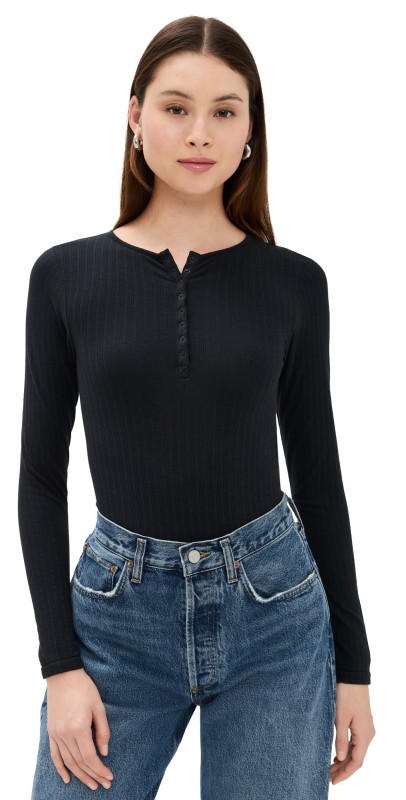Katrina Cotton Ribbed Sea Thong Bodysuit Black
