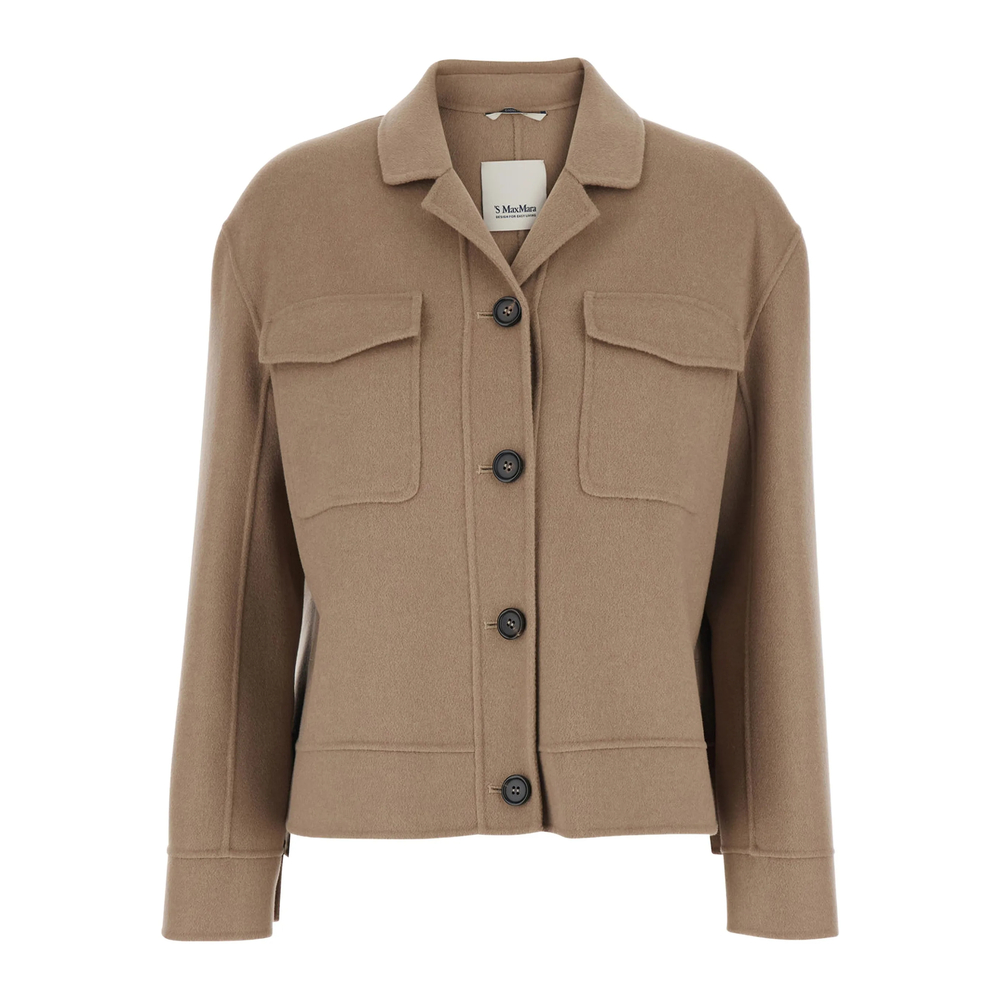 beigebutton fasteningpoint collartwo chest flap pocketslong sleevesstraight hem