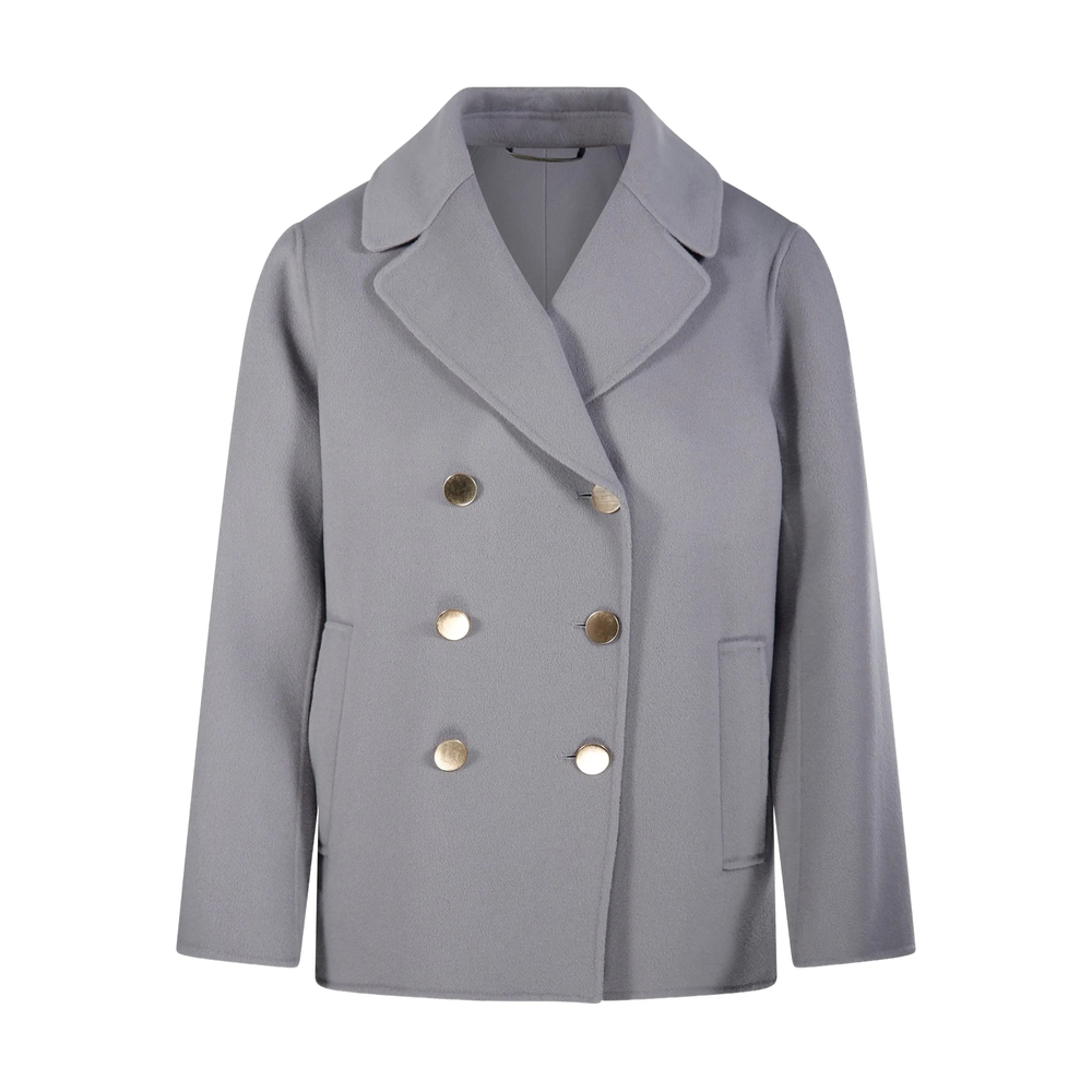 light grey gold-tone buttons notched lapels welt pocket double-breasted fastening