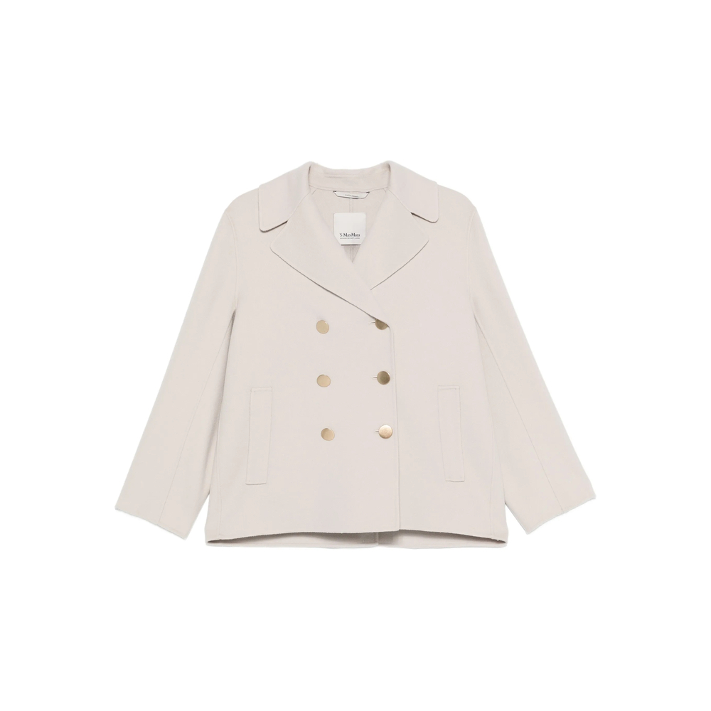 light grey double-breasted gold-tone buttons notched lapels front pockets long sleeves