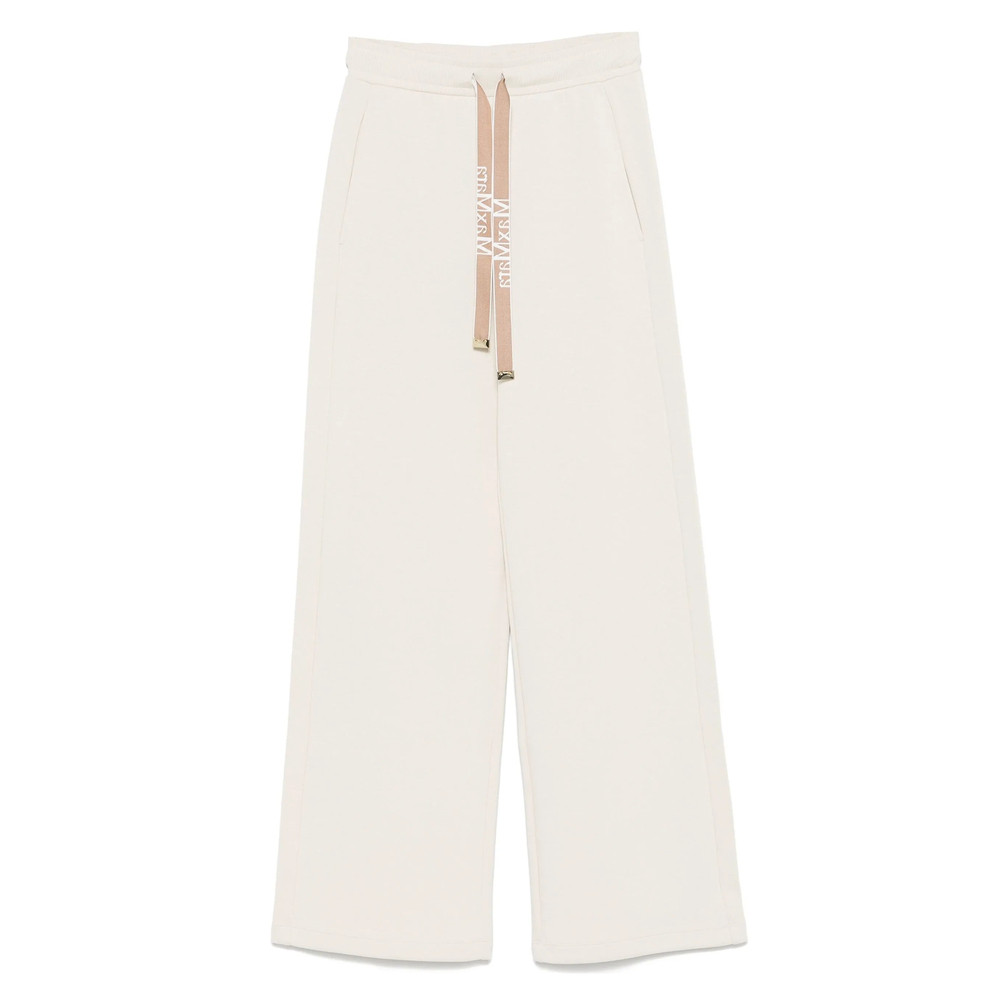 light beige elasticated drawstring waistband two side slash pockets straight hem