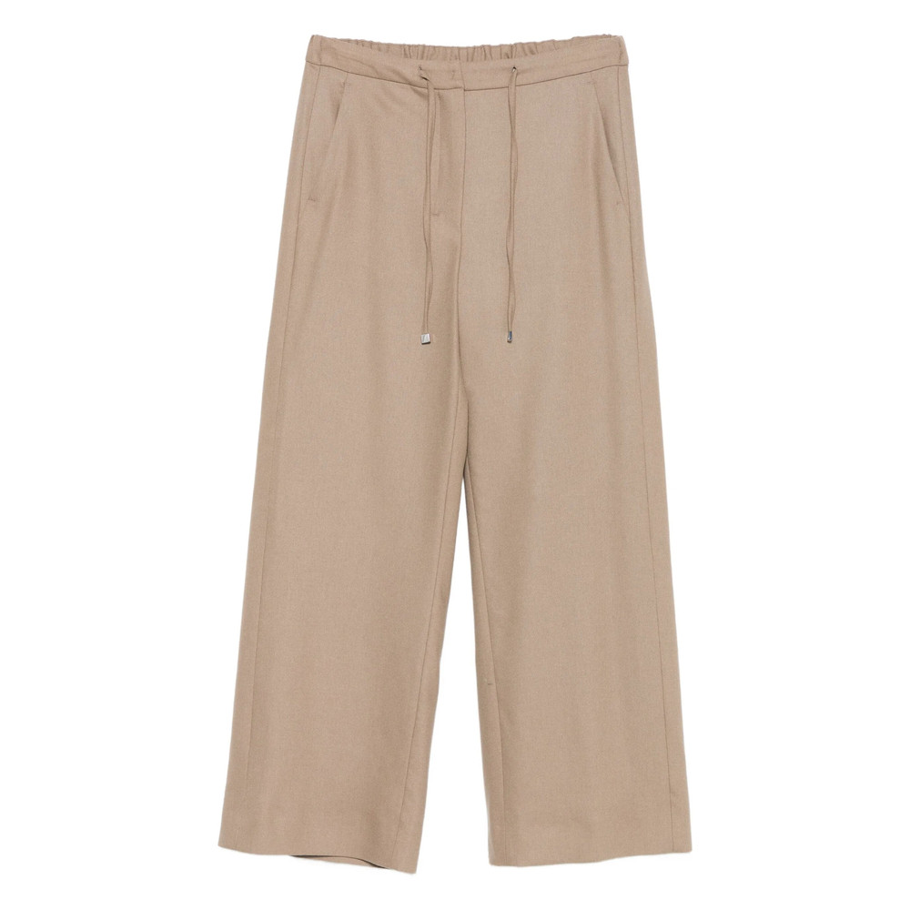 light brown drawstring fastening side seam pockets wide leg straight hem