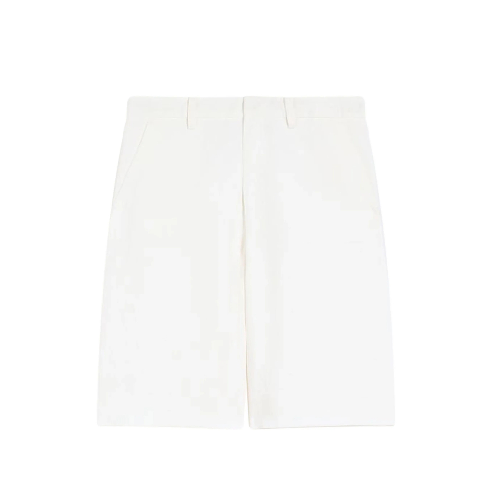 white belt loops side pockets button fastening