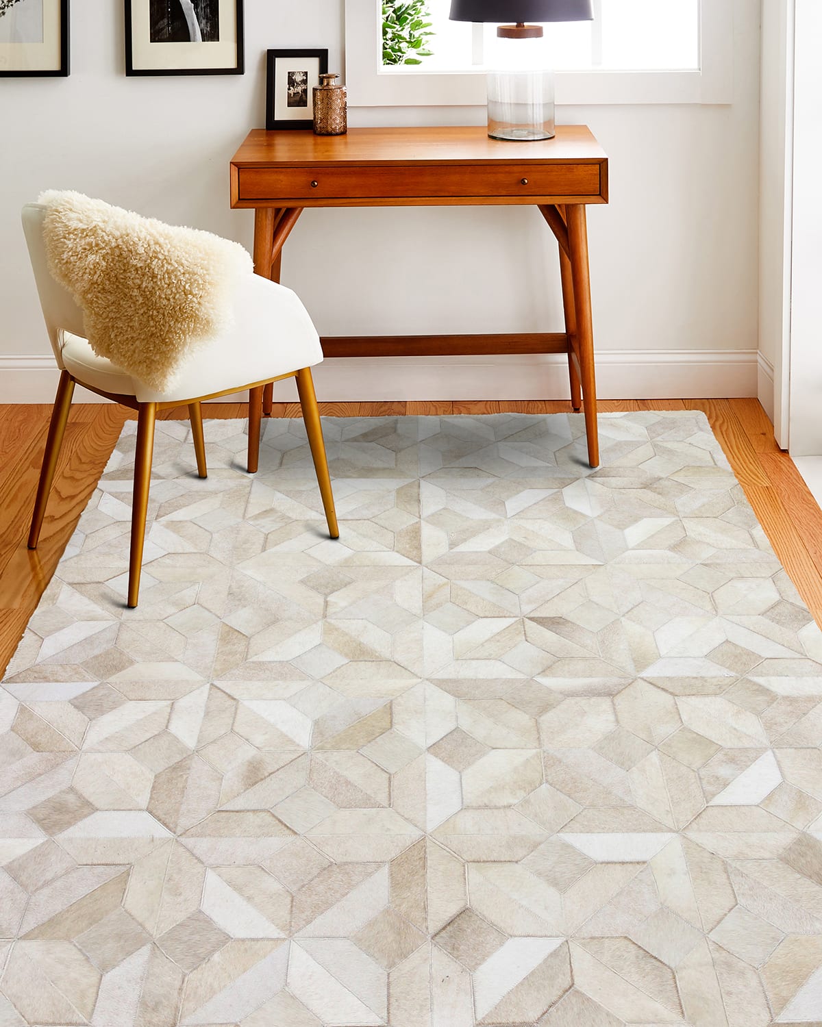 Rug is handcrafted of treated cow hair (USA) Item Weight (Lbs.): 32.0 Vacuum regularly; professional clean only Size is approximate; we recommend use of a rug pad (not included) Imported
