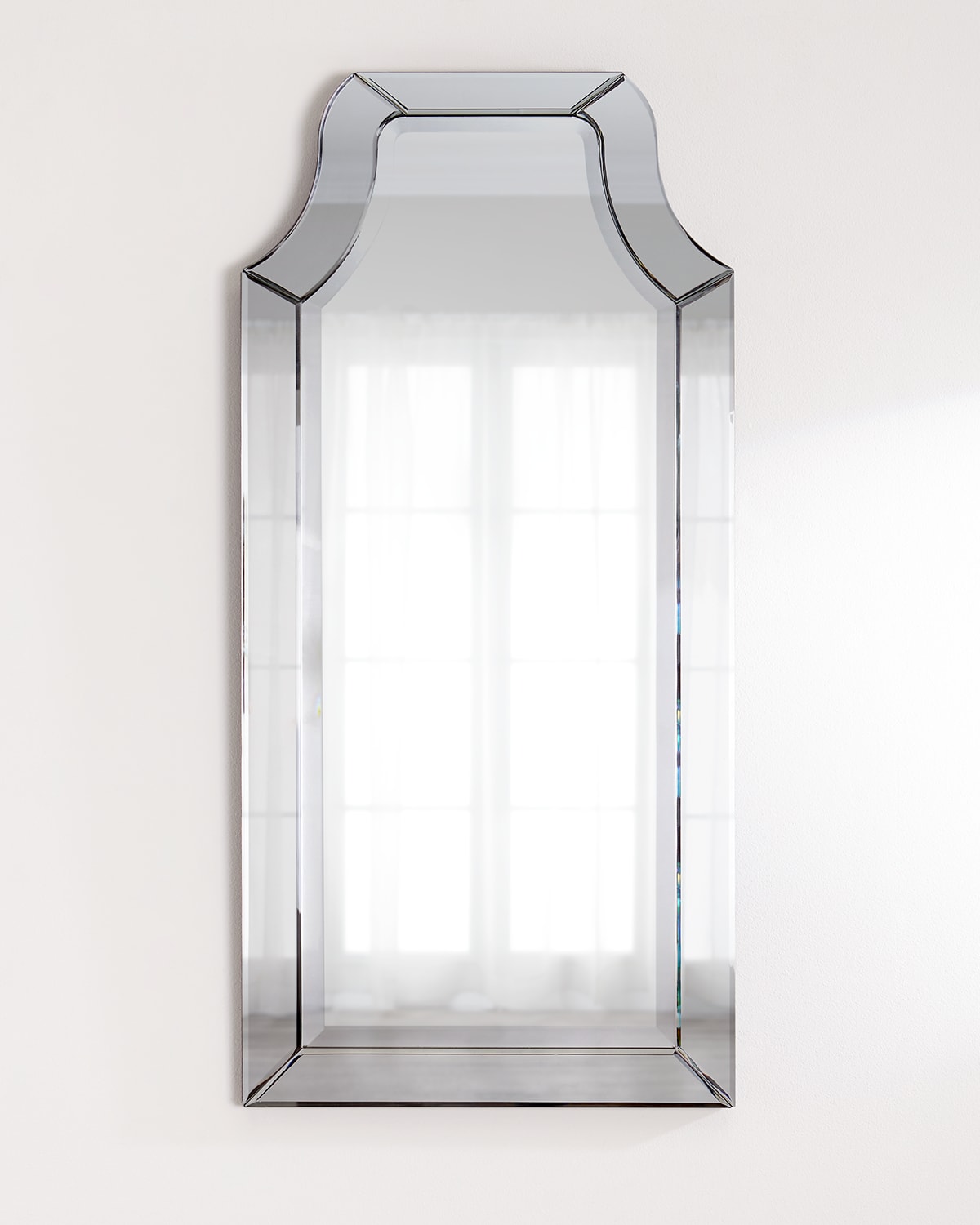 EXCLUSIVELY OURS. Mirror is handcrafted of glass and wood composite. Framed with beveled panels. Approx. 20"W x 1"D x 42"T. Polished edges with etching and Vshaped grooves for character. Imported. Weight, 25 lbs. Boxed weight, approximately 28 lbs.