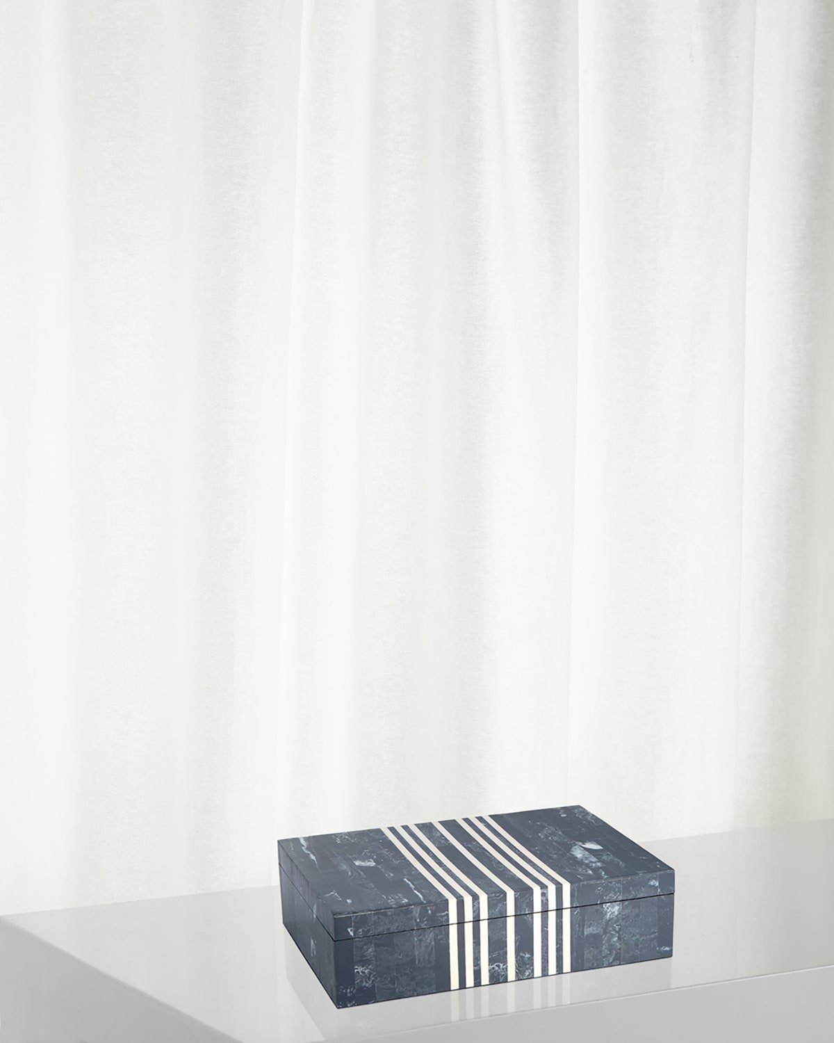 Crafted with care and precision, the Lapis Collection features boxes with handcut natural and faux bone (resin) pieces meticulously arranged to create striking patterns. While these boxes do not have hinges, each lid has stripes that perfectly match the box. The finished interior ensures every aspect is thoughtfully considered. These exquisite boxes showcase seamless craftsmanship and attention to detail. Handcrafted of resin, bone, and wood composite with velvet lining Approx. 13.25"L x 9.5"W x 3.8"T Item Weight (Lbs.): 4.0 Wipe clean Imported
