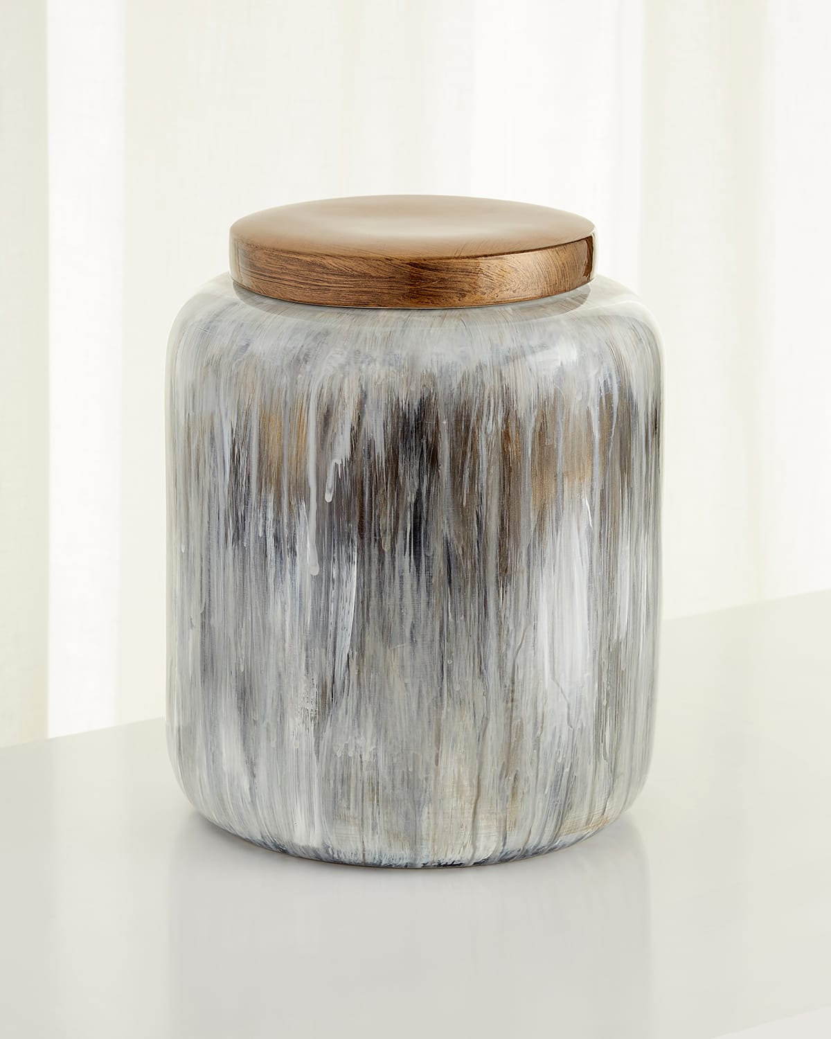 Handcrafted vase in porcelain. Olive glaze finish. 8.5"Dia. x 10"T. Dust with a dry cloth. Imported.