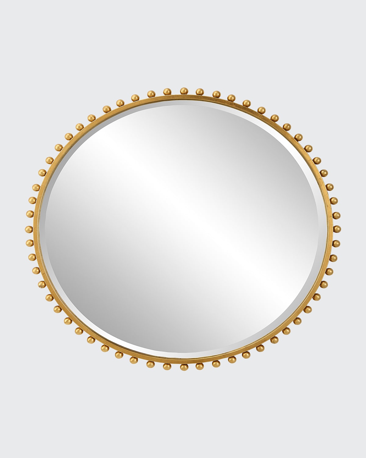 Handcrafted mirror with round frame and petite iron spheres Made of mirrored glass and metal Approx. 32"L x 1.0"W x 32"T Wipe clean Imported Weight, 37.0lbs Boxed weight, approximately 42.0lbs