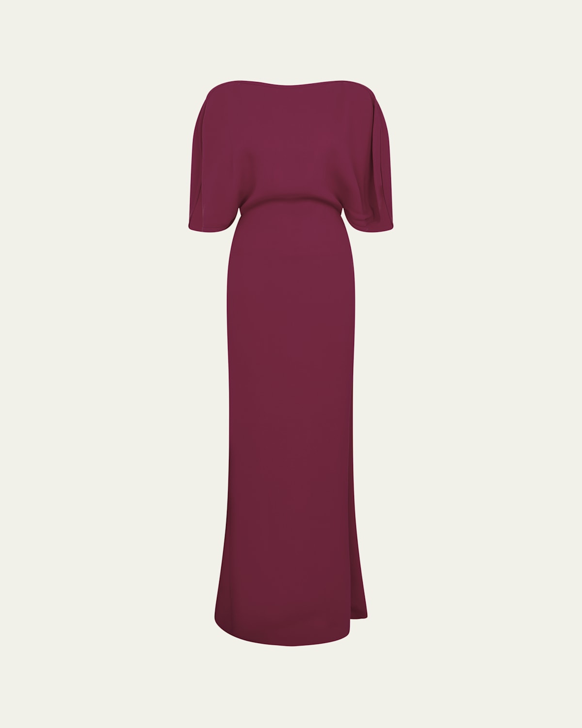 16ARLINGTON "Dona" gown features a relaxed blouson bodice Boat neckline Elbowlength sleeves Full length Column silhouette Polyester Made in Portugal