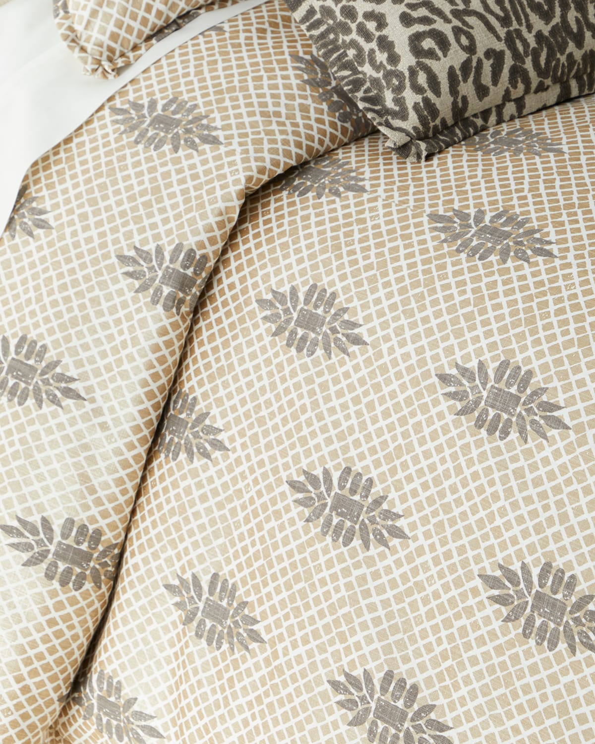 Patterned duvet made of cotton and linen For indoor use Approx. 108" x 98"L Dry clean Made in USA