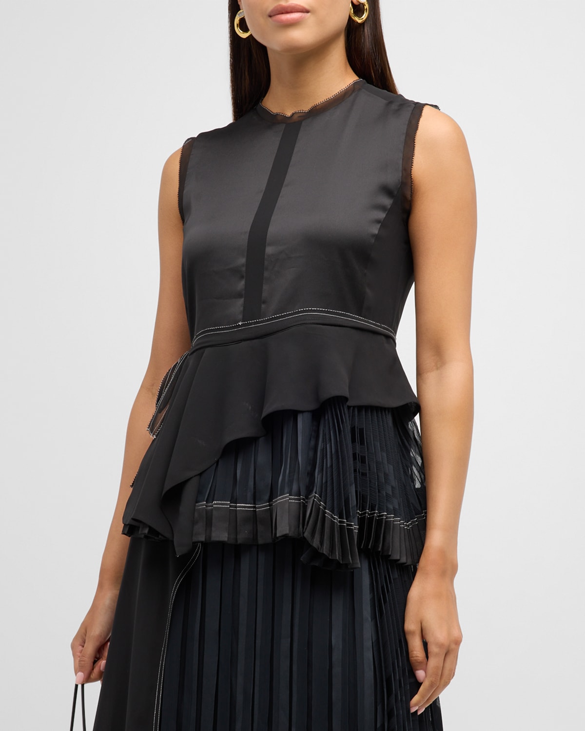 3.1 Phillip Lim polyester top featuring an asymmetric pleated hem Crew neckline Sleeveless Selftie waist Fitted silhouette Peplum hem Back zip Polyester Lining: Polyester Dry clean Imported