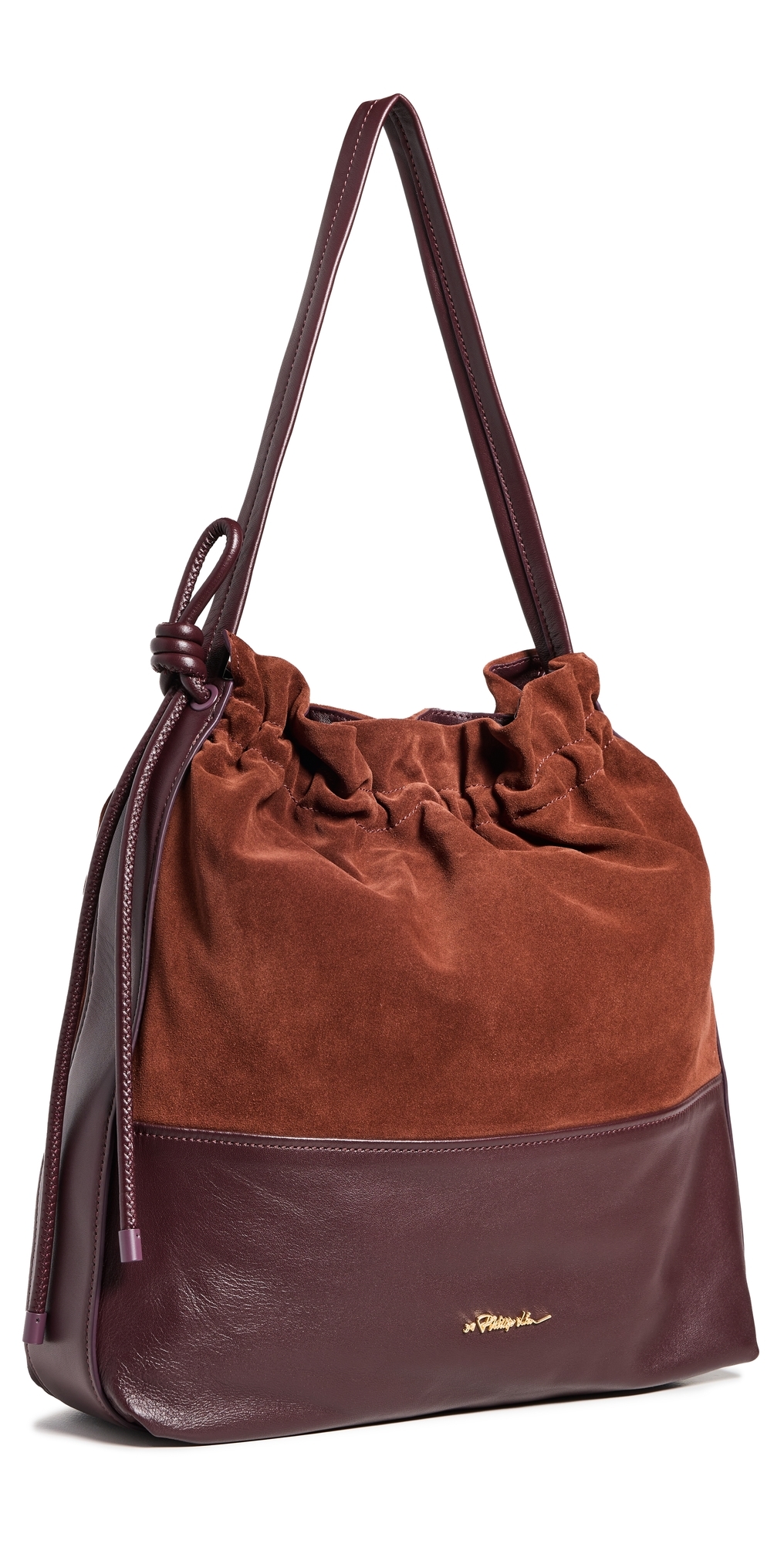 Lambskin. Colorblock design and slouchy silhouette. Suede trim. Elastic top with magnetic snap. Patch interior pocket. Shoulder strap. Textile lining. Weight: 24oz / 0.68kg. Imported, China. Measurements: Height: 14.5in / 37cm Length: 15.25in / 39cm Depth: 4.75in / 12cm Strap drop: 10.75in / 27cm