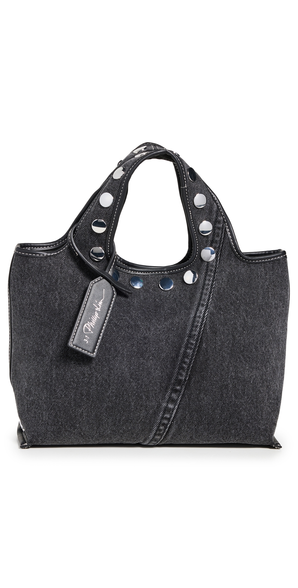 Washed Denim Mini Market Tote with Studs Washed Blk