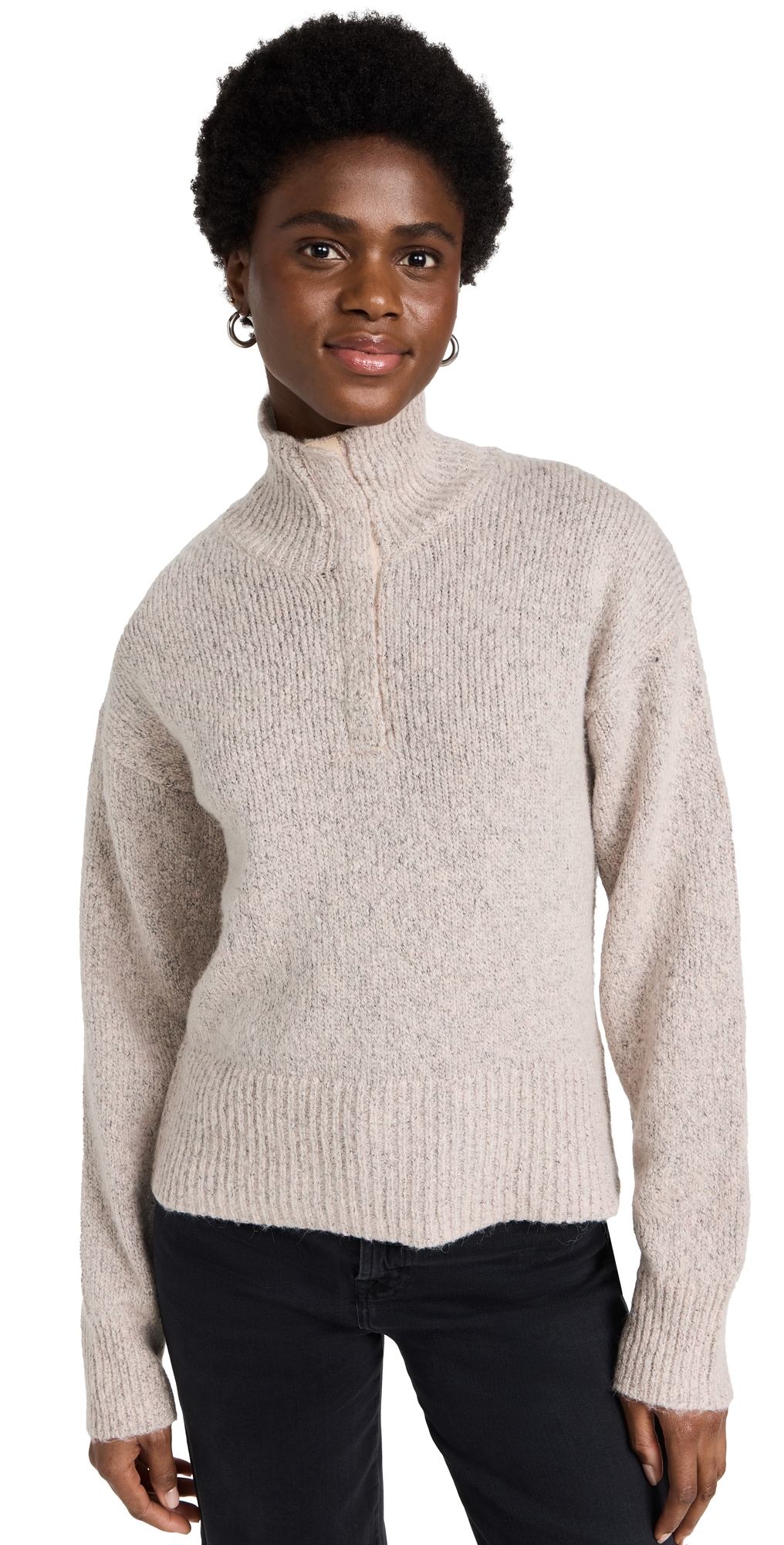 Fabric: Mid-weight, ribbed knit. Mock neck and long sleeves. Partial, hidden snap placket. Shell: 51% polyester/23% acrylic/19% cotton/6% wool/1% spandex. Wash cold or dry clean. Imported, China. Measurements: Measurements from size S Length: 21.25in / 54.0cm, from shoulder