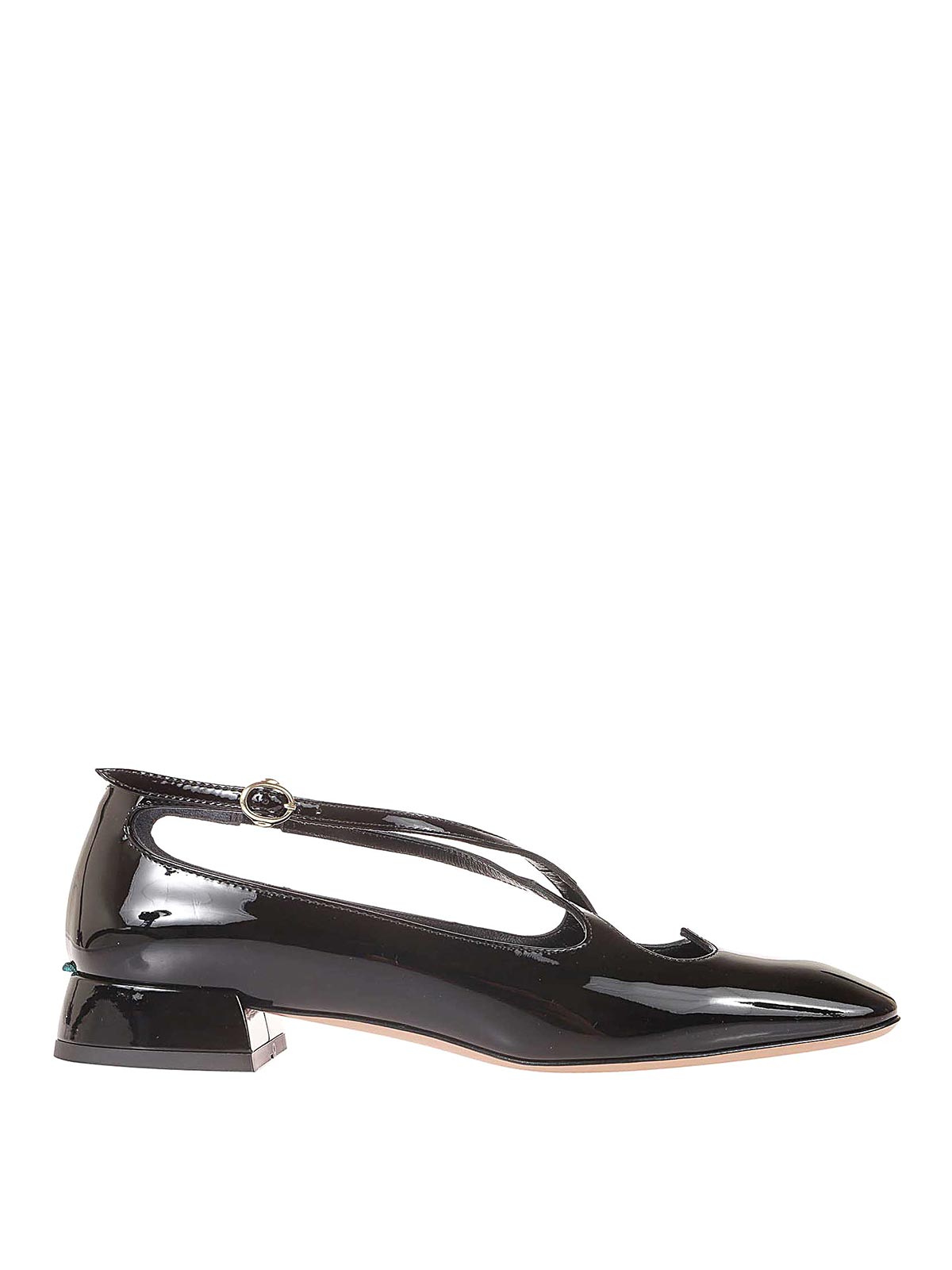 Tige en cuir verni avec bride de cheville en cuir croisé et tailles EU